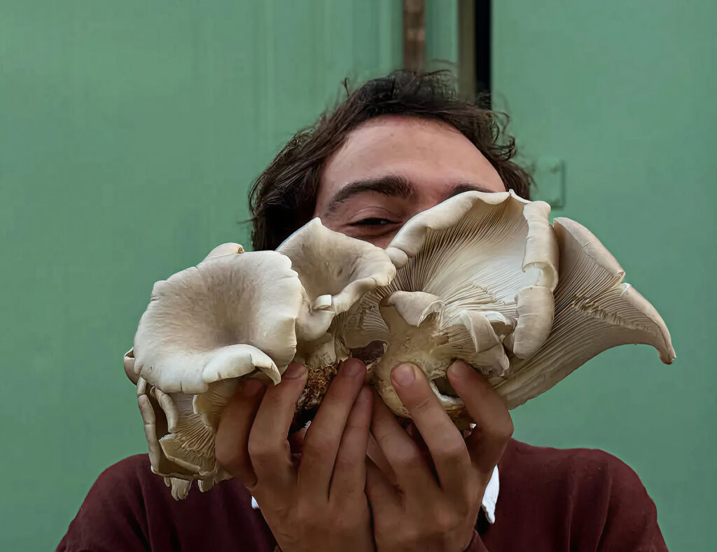 A ideia nasceu em Lisboa: transformar borras de café — que normalmente seriam lixo — em substrato para cultivar cogumelos ostra (pleurotus).